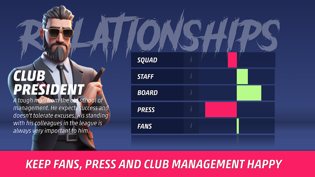 En tant que manager de football, vous êtes entraîneur de football, directeur sportif et directeur du club en un. Améliorez vos tops onze, trouvez et entraînez les étoiles et les meilleurs talents de demain et conduisez votre club au sommet du football.