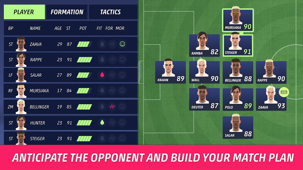 - Économisez les forces de vos joueurs pendant la saison pour obtenir vos meilleures performances sur le terrain dans les phases décisives de la saison